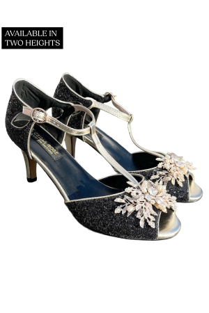 CLASSIC T-BAR FLORAL EMBELLISHMENT OPEN-TOE HEELS